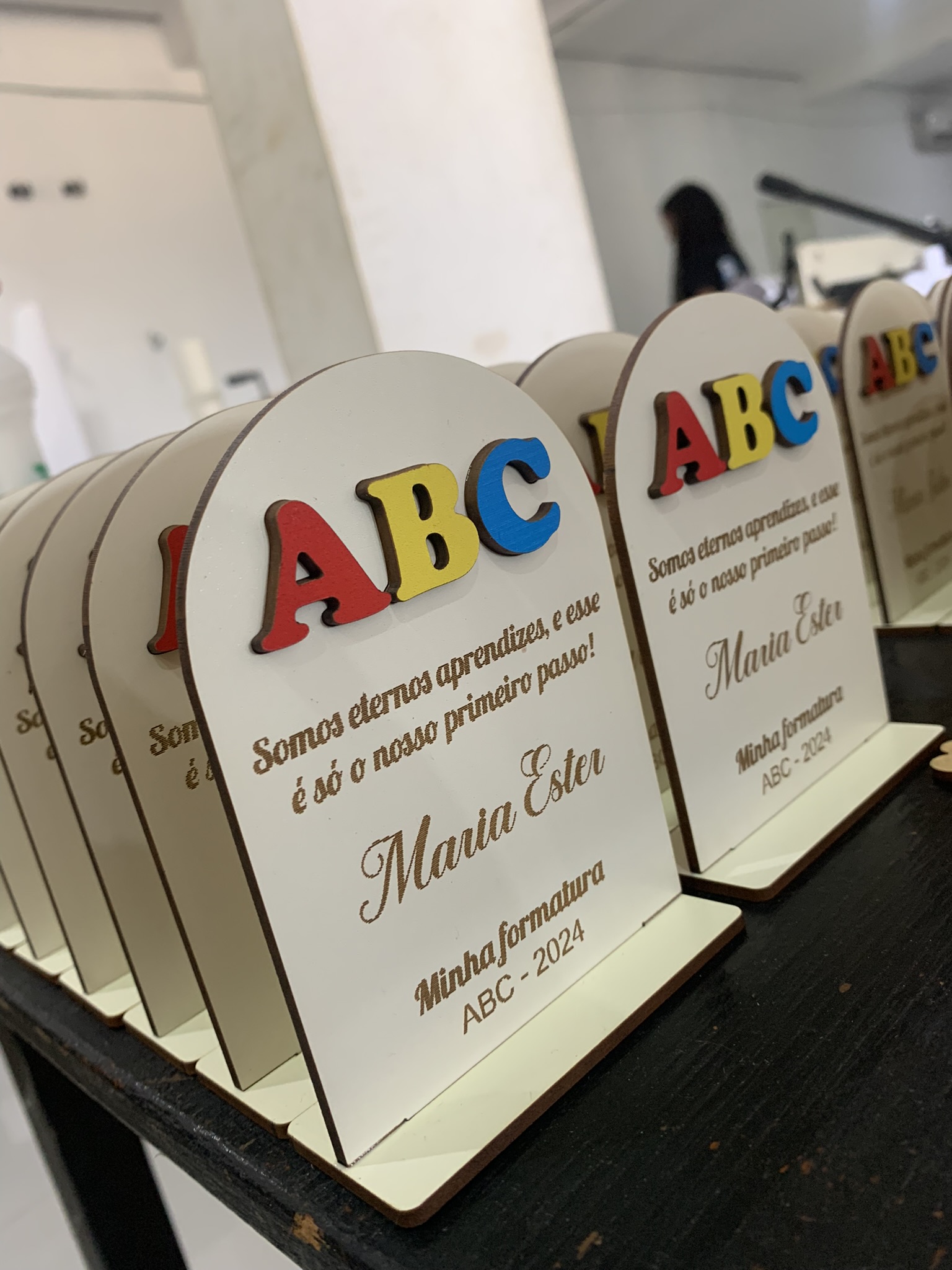 LEMBRACINHA ABC FORMATO ARREDONDADO 9X12CM MDF BRANCO